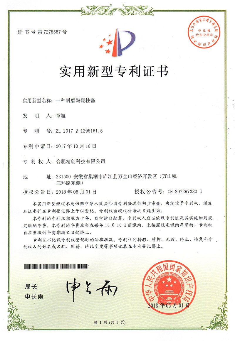 (2018實用新型)一種耐磨陶瓷柱塞